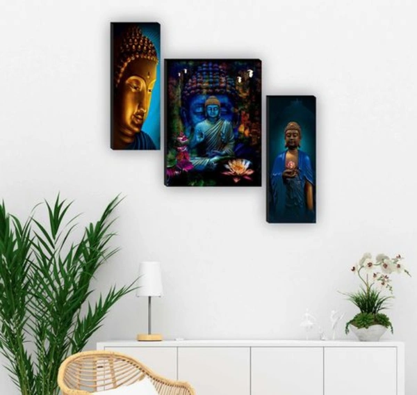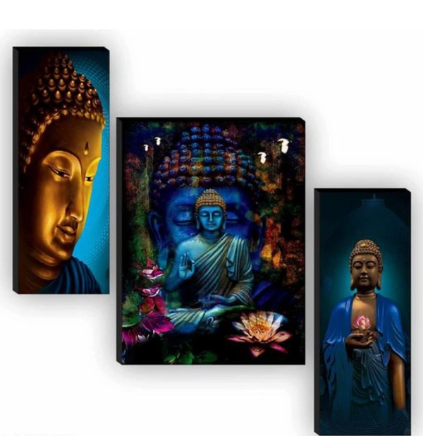 Set of 3 Sitting Buddha UV Textured Home Decorative Gift Item Self Adeshive Painting 18 Inch X 12 Inch Material: MDF Pack: Pack of 3 Product Length: 12 Inch Product Breadth: 0.5 Inch Product Height: 18 Inch Country of Origin: India